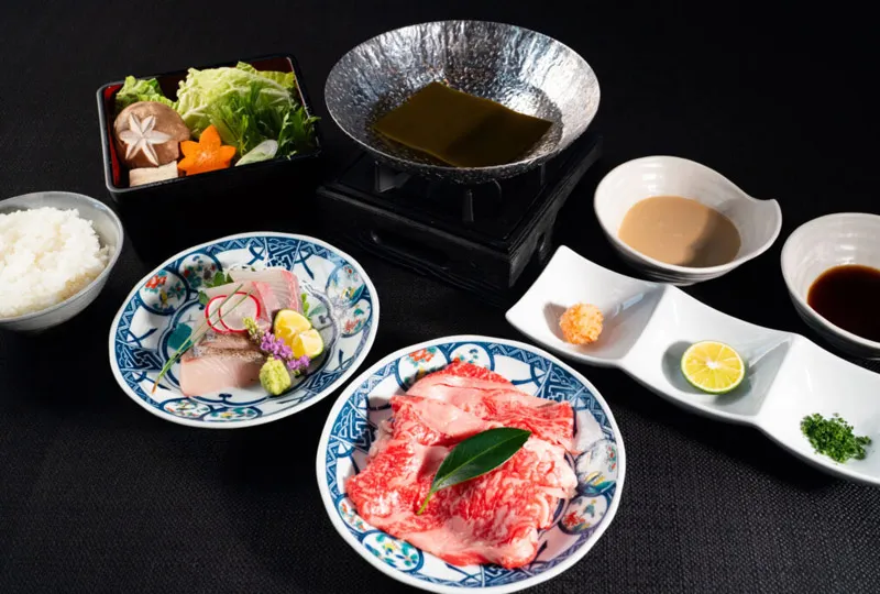 淡路島のブランド牛である「淡路牛」は、きめ細かな肉質と上品な霜降りが魅力です。「淡路牛のしゃぶしゃぶ膳」では、肩ロースを贅沢に使用しています。