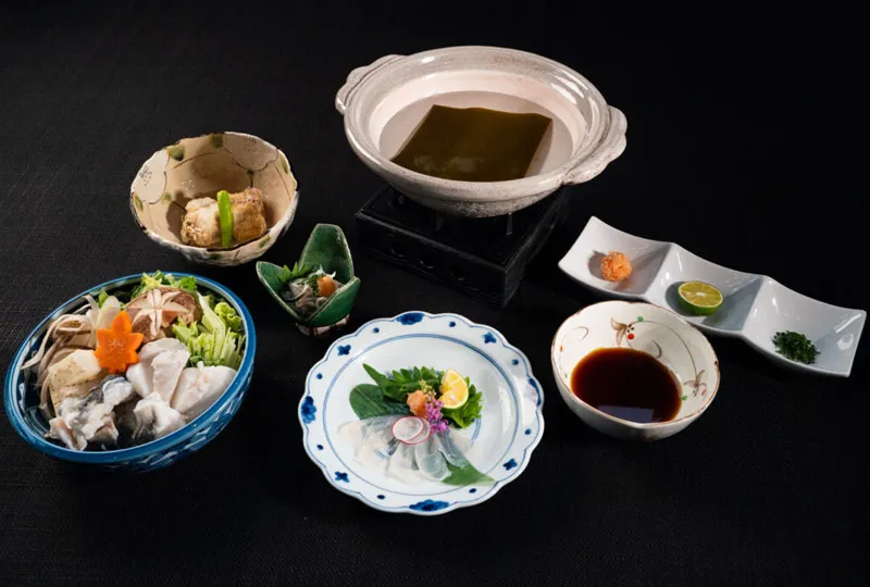 淡路島の福良港で3年以上育てられた「淡路3年とらふぐ」は、身が引き締まり、天然ふぐにも引けを取らない力強い旨みが特徴です。多彩なスタイルでふぐの美味しさを堪能できます。