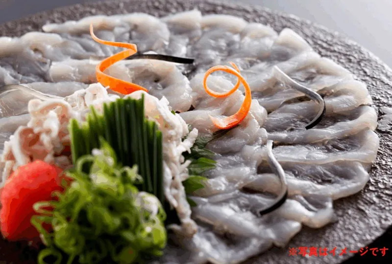 3年とらふぐのてっさ(刺身)振舞いとウェルカムドリンクのサービスもあります。プロ音楽家の生演奏も堪能できます。パソナグループ「音楽島-MusicIsland-」のプロヴァイオリニストの益子侑さんが生演奏を披露します。