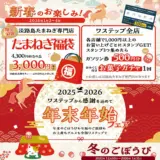 年末年始フェアが開催されます。2025年12月10日(水)から2026年1月31日(日)まで、淡路島の総合ショップ「ワステップ淡路島」で、年末年始ならではの企画が揃います。 新春限定の「たまねぎ福袋」の販売をはじめ、館内全店を対象としたスタ...