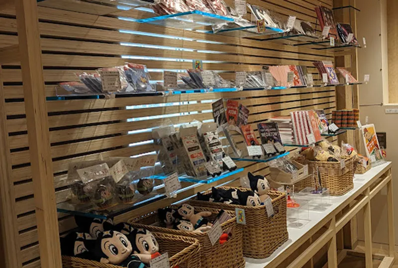 パビリオンのナビゲーターで活躍したアトム、からだナビゲーターとして活躍したブラック・ジャック、ブラック・ジャックの手によって生まれ変わった新キャラクター「ネオアトム」のグッズが並びます。