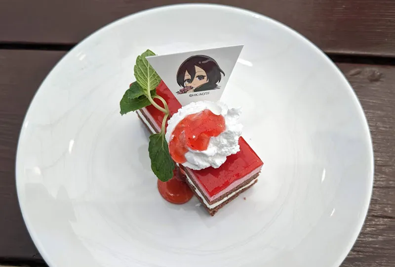 ミカサの赤いマフラーをイメージした「あったかいミカサの赤いマフラーケーキ」をはじめ、お掃除の一休みにピッタリの「リヴァイ兵士長の掃除のあとのティーオレ」などのコラボドリンクもあります。