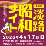 2026年4月17日(金)の18時30分から21時30分まで、淡路島の旧小学校跡地を活用した施設「SAKIA(サキア)」のオサキ食堂カフェテラスで、「第五回 淡路昭和ナイト」が開催されます。
