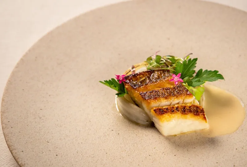 魚料理は、旬魚のポワレ 白ワインと淡路ヨーグルトのソースが提供されます。淡路島産の旬の魚を香ばしく焼き上げたポワレです。濃厚な味わいを掛け合わせたソースと一緒に愉しめます。