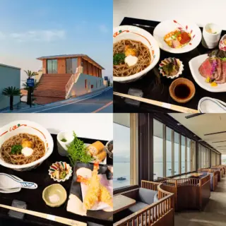 パスタフレスカダンメンは、淡路島北東部の埋立地にある生パスタのコンセプトレストランです。創業110年の老舗「淡路麺業」が直営します。吹き抜けの開放的な空間で海が眺められます。